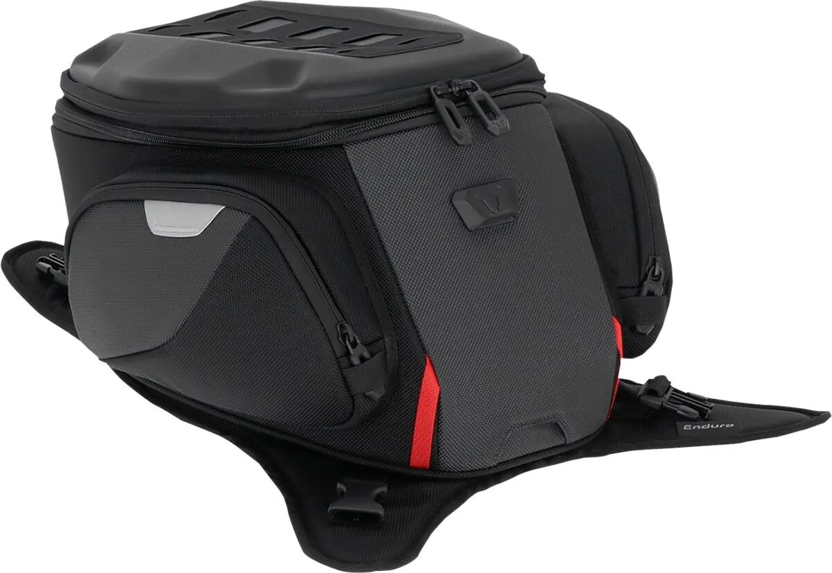 The PRO Enduro strap tank bag fits like a glove on touring motorcycles with sloping fuel tanks.