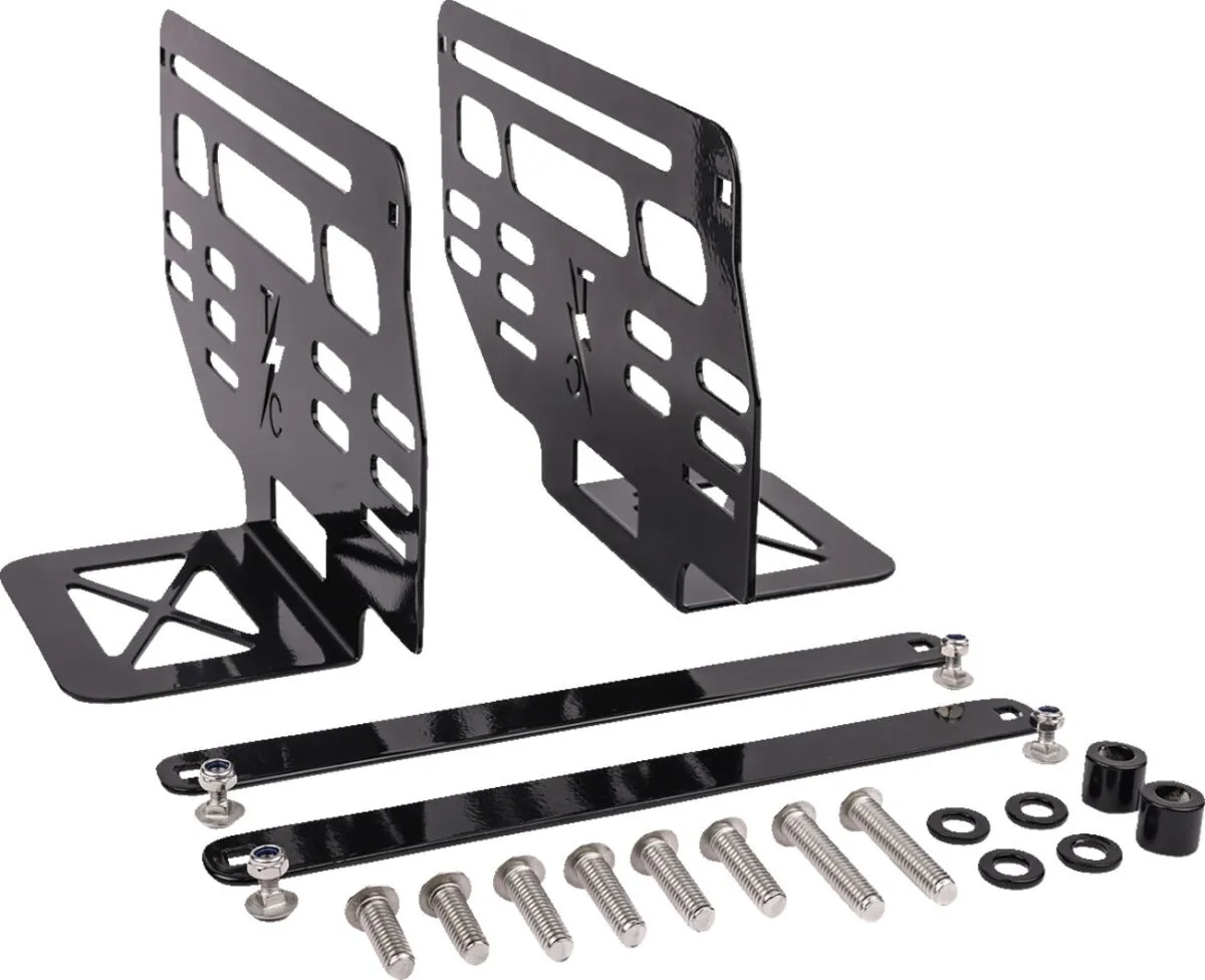 ×Hard mount brackets designed specifically for the Essential, Escape, and Expedition Saddlebags! These mounts allow you to use our saddle bags without using the traditional throw over design. One of the key features for our hard mount brackets is the ability to raise and lower the height of the bracket by 1/2" up and down.