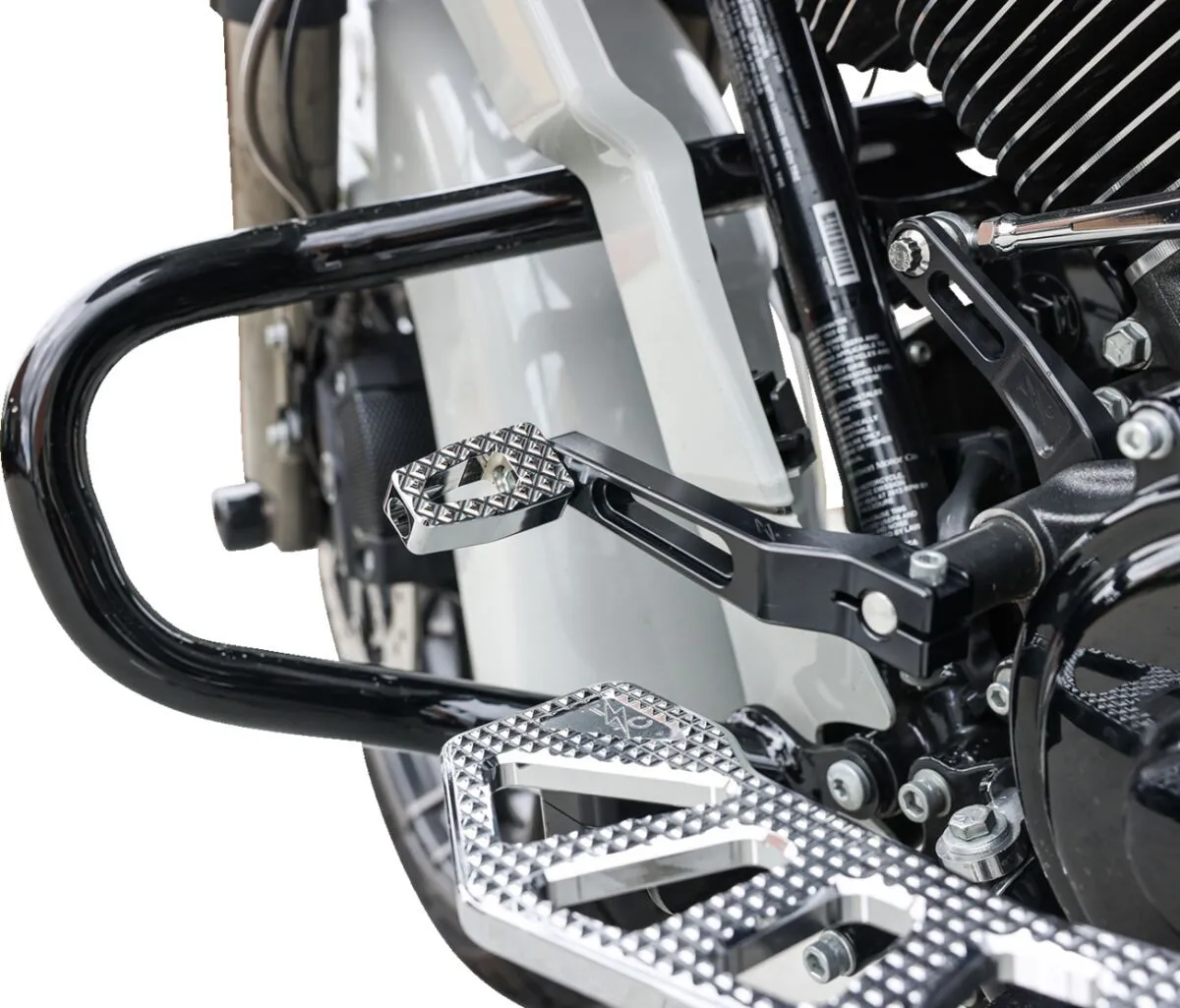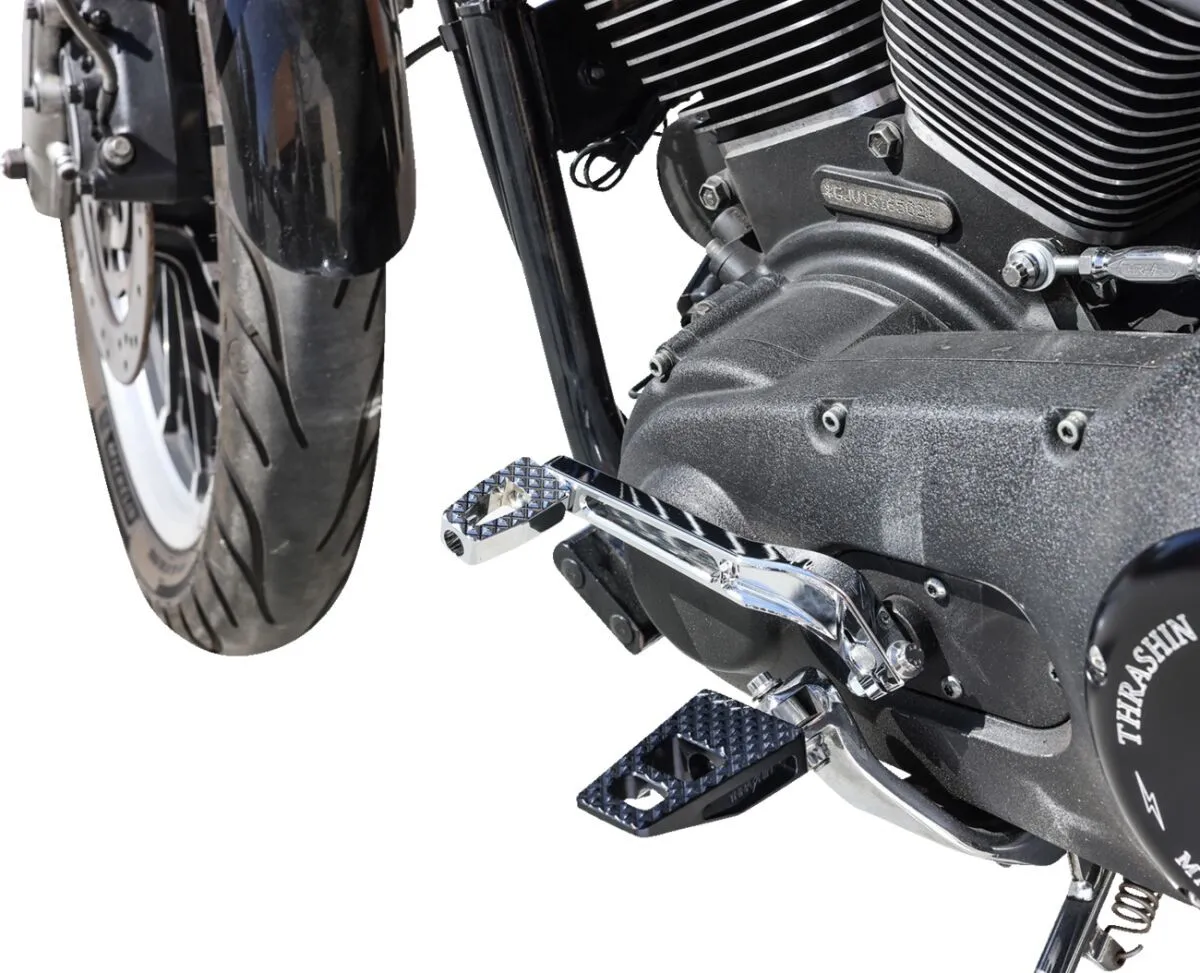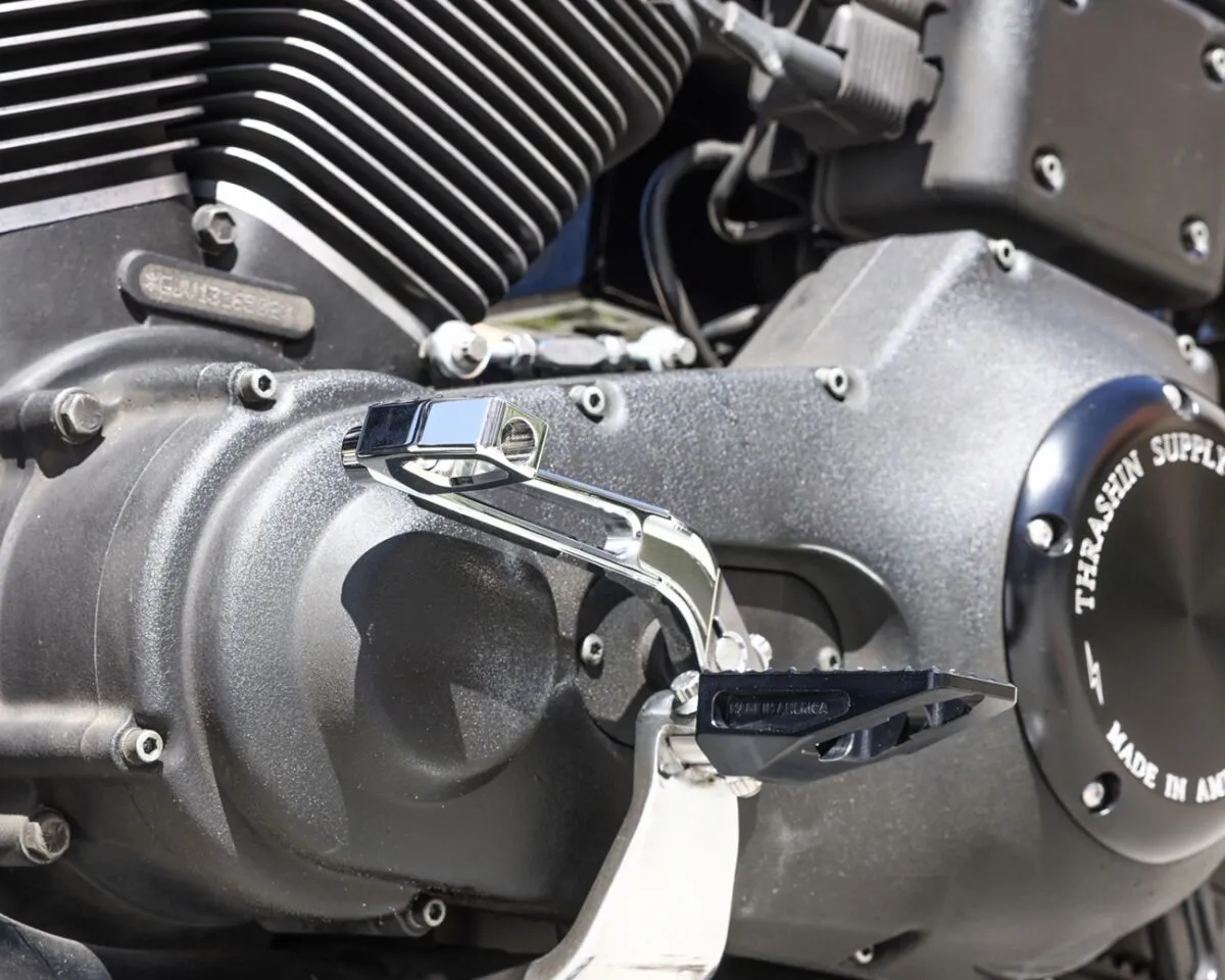 Shifter peg can also be used as a brake pedal on Thrashin Softail billet brake arm; part # TSC-2300-1 and TSC-2300-3. Not compatible with adjustable bagger brake arm.