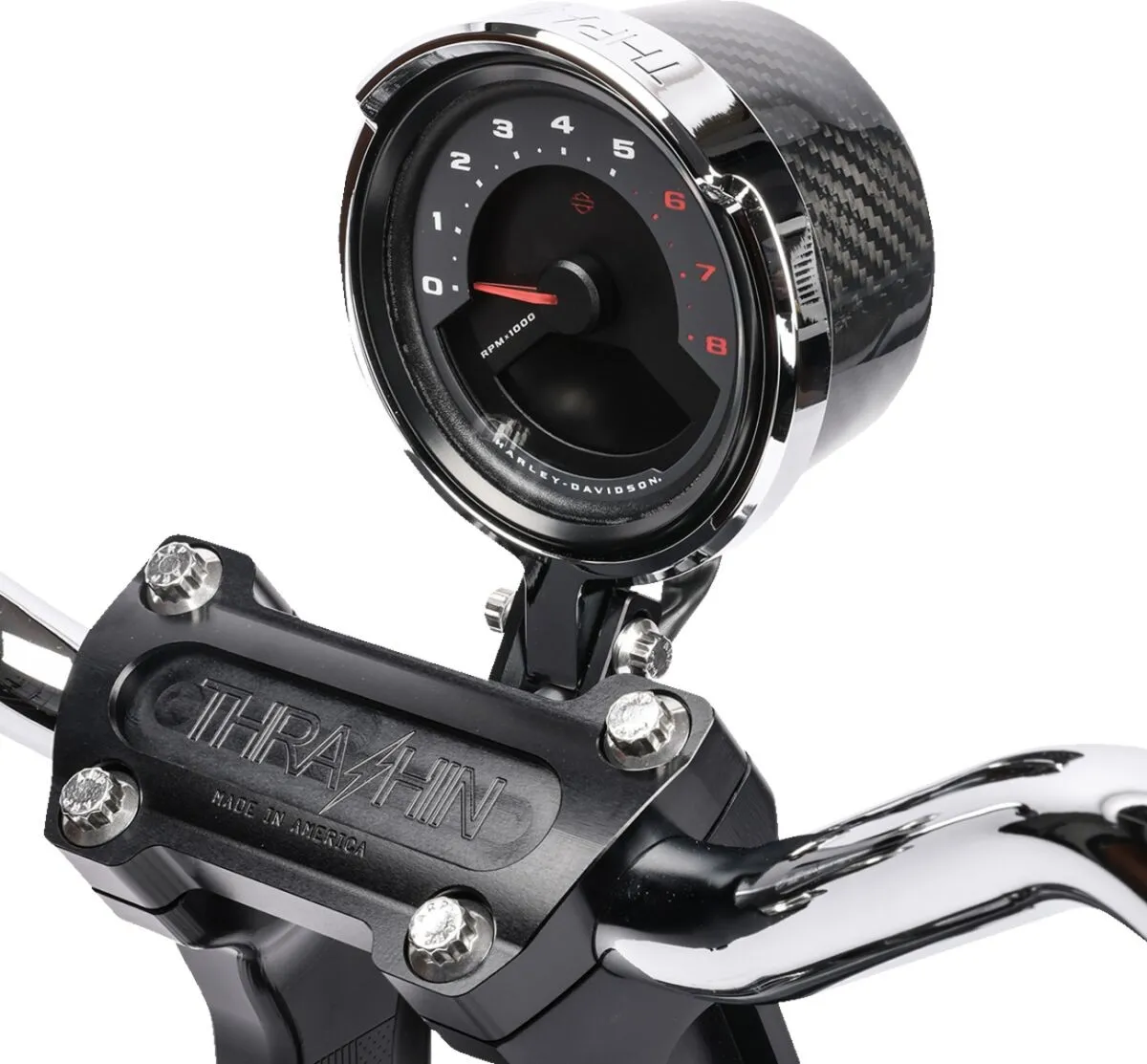 This Gauge Relocation was originally designed for the 4" gauge that comes stock on the 2022 Lowrider S. Thrashin found that it does work on many OEM Harley 4" Gauges, but will require the Lowrider S Gauge Rubber Gasket for proper fitment, part number 67121-95A.