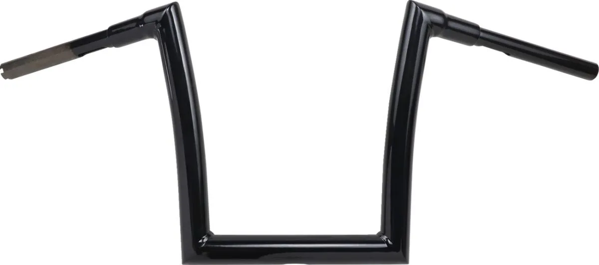 Width: 81,5 cm (32") Colour/Finish: Black| Gloss Pullback/Sweep: 12,5 cm (5") Center Width: 23 cm (9") Features: Accepts Heated Grips| For Hydraulic Clutch| Notched for Throttle By Wire| Pre-Drilled| Smooth, Unknurled Controls Diameter: 25,4 mm (1") Handlebar Diameter: 38 mm (1-1/2") Units: Each Material: Steel Clamping Diameter: 38 mm (1-1/2") Type/Bend: Ape Hanger| Strip Base Finish: Gloss End Rise: 30,5 cm (12") Product Name: Handlebar Base Colour: Black