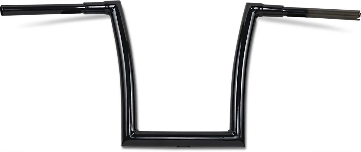 Pullback/Sweep: 12,5 cm (5") Units: Each Colour/Finish: Black| Gloss Controls Diameter: 25,4 mm (1") Material: Steel Product Name: Handlebar Type/Bend: Ape Hanger| Strip Width: 84,5 cm (33-1/4") Center Width: 23 cm (9") Handlebar Diameter: 38 mm (1-1/2") Clamping Diameter: 38 mm (1-1/2") Base Finish: Gloss End Rise: 35,5 cm (14") Features: Accepts Heated Grips| For Hydraulic Clutch| Notched for Throttle By Wire| Pre-Drilled| Smooth, Unknurled Base Colour: Black