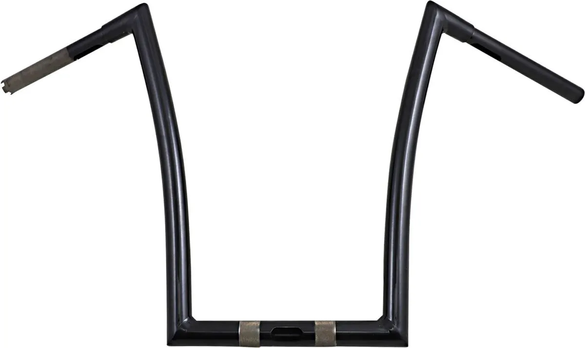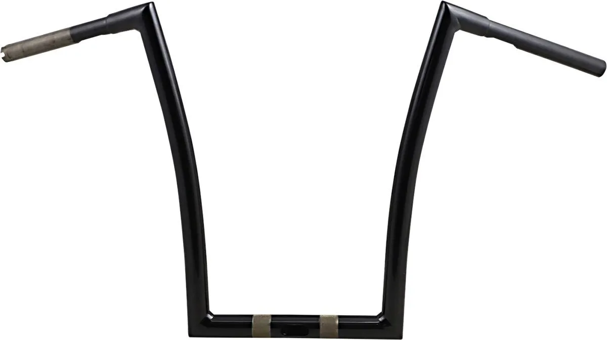 Center Width: 23 cm (9") Pullback/Sweep: 15 cm (6") End Rise: 43 cm (17") Colour/Finish: Black| Gloss Product Name: Handlebar Units: Each Width: 84 cm (33") Base Colour: Black Base Finish: Gloss Material: Steel Controls Diameter: 25,4 mm (1") Handlebar Diameter: 32 mm (1-1/4") Type/Bend: Ape Hanger