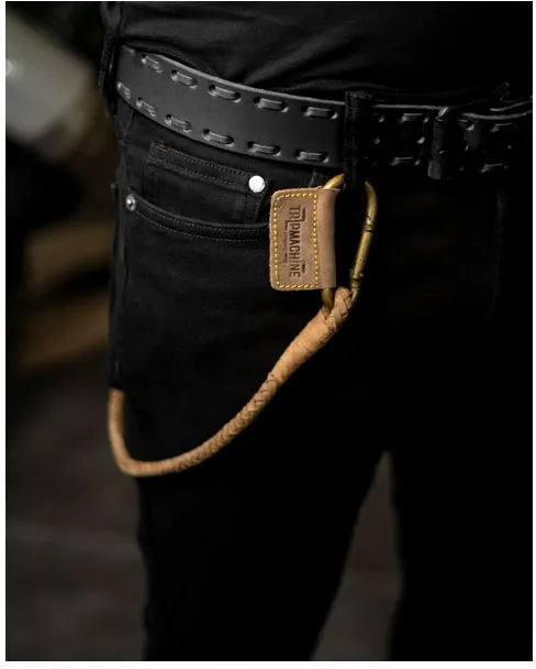 ×Carry your keys in style with the handmade braided keychain from Trip Machine. The leather braid has been hand finished to perfection.Theheavy-duty metal carabiners are built to last and ensure thatthe keys are securely clamped to your pants at all times. The metalhardware is antique finishedfor a long-lasting vintage appeal.