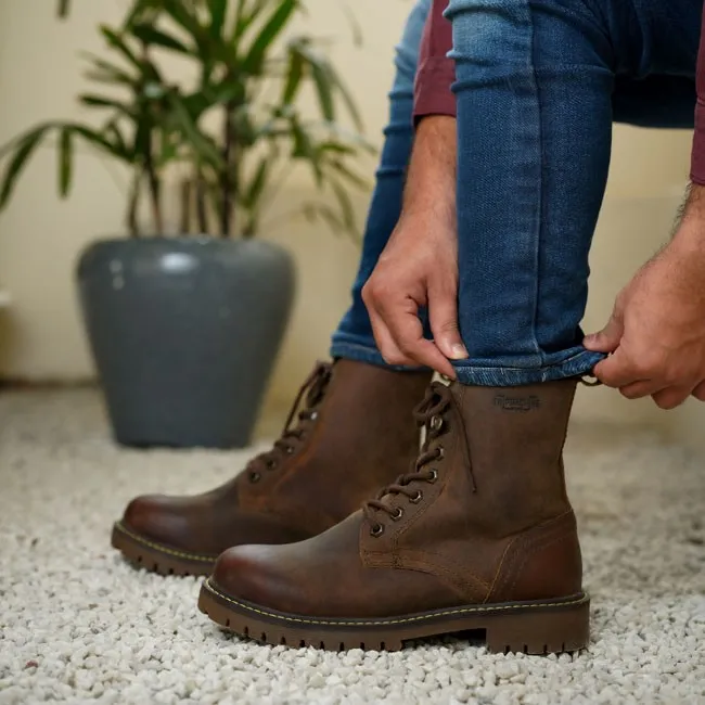 ×The Trip Machine Derby boots have been the most popular boots. The reinforcements in the toe, heel and ankle are robust and we have increased the gauge of the leather by 2 mm to improve abrasion resistance. The footbed is constructed from a memory foam to provide better comfort. The boots are still constructed from waxed leather with a metallic shank, and a texon insole, to give you the confidence to go anywhere. These boots are lined with lycra and leather to give the best comfort for long time wear with metal hardware finished in antique gold, the boots provide a blend of durability, luxury and style. The sole is an extremely light weight which makes these one of the lightest motorcycles boots out there.