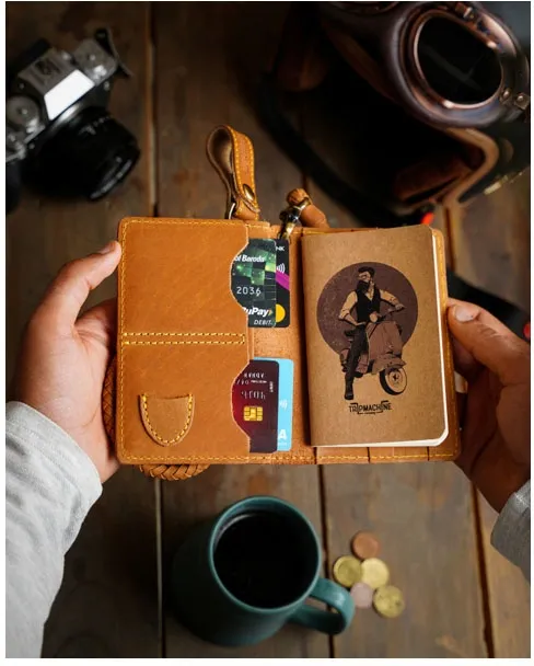 ×The Trip Machine Explorer wallet is made for those who can not stay still. The explorer wallet is an everyday essential that''s also a great travel partner on the road. It''s reminiscent of the forgotten art to capture memories on paper. After all, the most memorable adventures are captured in the mind and not on camera. Every wallet comes with field notes of choice. Big enough to fit in a passport, small enough to fit in your pocket. Detailed specs: 2 main compartments for money and bills, 2 card slots for all the cards, pocket for guitar pick, slot for fix in a field notes or place your passport. Made of the highest quality leather that is built to last a lifetime and gets better with every adventure.