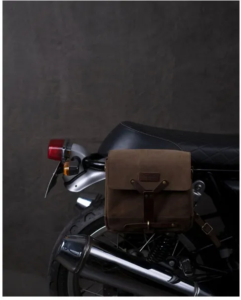×Inspired from the Swiss ammunition bag of the second world war. Two small pockets on the inside. Handmade classic from 100% virtually indestructible 2.5mm harness Heavy Duty leather and built to last. It has been treated to give it a distinctive, weathered look that will only get better with age. With the adaptable universal mount system it is On/Off the bike in seconds and it carries comfortable on your shoulder. A roomy pocket crafted from premium suede allows you to keep things organized. A perfect everyday satchel. Dimensions: 26cm x 23.5cm x 11cm.