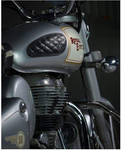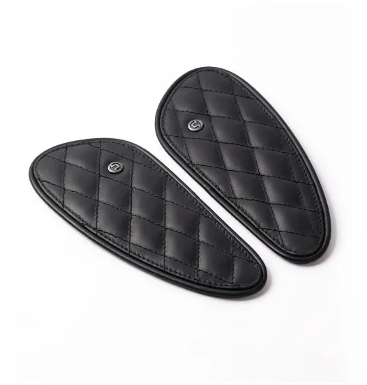 ×Handmade leather fuel tank pad set. Designed to replace standard tank pads or use them in other custom applications to enhance the visual appeal of your bike. Handmade from signature Trip Machine''s crunch (extra subtle) genuine leather. These will last well when maintained. Comes with industrial standard 3M tape installed to ensure the tank pads that will not damage your motorcycle paint and stay in place. Sold as a left & right set. Dimensions: 18.5cm long x 7.5cm high x 0.8cm thick. Note: Old rubber pads can be removed by applying moderate heat so the glue will get soft and the pad can be removed. Take your time. When applying too much heat paint or pads may be damaged. Contact a professional when in doubt.