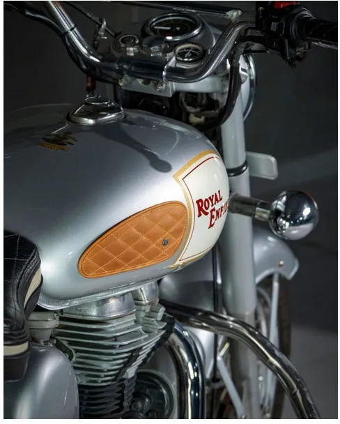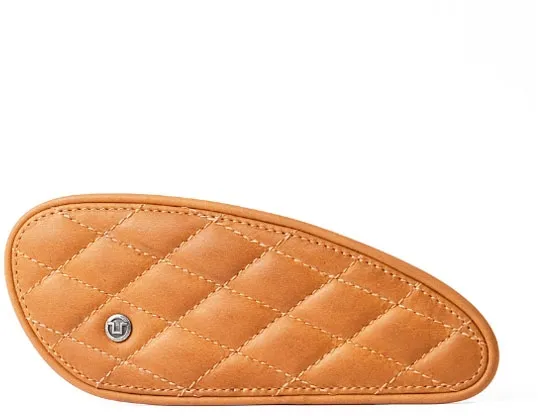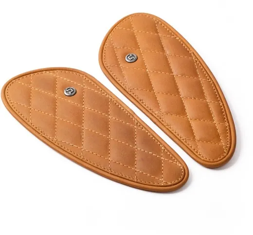 Handmade leather fuel tank pad set. Designed to replace standard tank pads or use them in other custom applications to enhance the visual appeal of your bike. Handmade from signature Trip Machine''s crunch (extra subtle) genuine leather. These will last well when maintained. Comes with industrial standard 3M tape installed to ensure the tank pads that will not damage your motorcycle paint and stay in place. Sold as a left & right set. Dimensions: 18.5cm long x 7.5cm high x 0.8cm thick. Note: Old rubber pads can be removed by applying moderate heat so the glue will get soft and the pad can be removed. Take your time. When applying too much heat paint or pads may be damaged. Contact a professional when in doubt.
