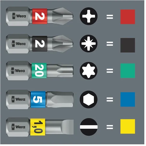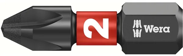 ×1/4" drive, 25mm long. Diamond coated bit head to prevent slipping. Compatible with impact drivers. Compatible with 1/4" drive DIN ISO 1173-C 6.3 bit holders. Color coded for head style (Red = Phillips) and printed for size. Series 851/1 IMP DC - Phillips Impaktor bit. Size: PH2.