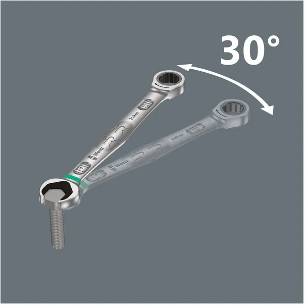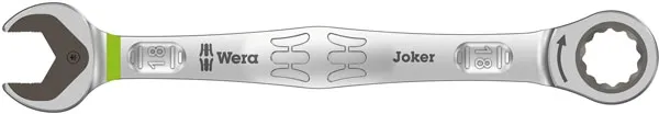 ×With an open end on one side and a ratcheting box end on the other side. With identical sizes on both ends. Color coded for size. When everything fails, it''s time to play your Joker. - Open end. The Joker has a non-angled 12-point beak, therefore it requires just 30 of working space, otherwise it functions just like a regular open end wrench. The dark metal plate dual functions as a retainer, preventing the nut to slip through the wrench beak or it holds the nut. 30 further the metal retainer plate allows the nut to slide through, or grip it since the metal plate is equipped with a hardened ragged edge. The teeth of this edge will ''bite'' itself into a rounded-off nut, loosening it where others do nothing but slip-off. - Box end. Comes with a very fine 80 tooth ratchet for a small 4.5 return angle. Ratcheting direction is indicated on both sides. Size: 18mm. Overall length: 235mm.