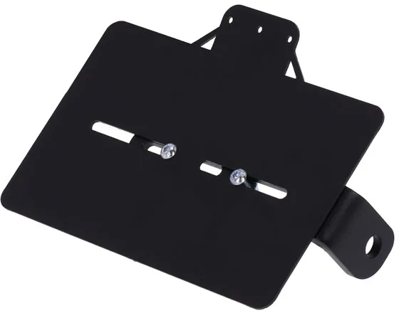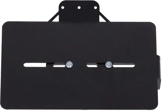 ×Black. For French license plates measuring 210mm x 130mm. Not designed for use with a taillight. License plate illumination must be ordered separately as 943294. Made from 1.5mm thick steel, with a black wrinkle powder coated finish. For left and right side use. The horizontal elongated mounting holes allow further horizontal adjustments for a snug fit on the bike. The L-shaped mount bracket is 35mm wide and made of 6mm thick steel. Note: Not designed for installation of a taillight. Note: License plate illumination light is not included and can be ordered separately as 943294.