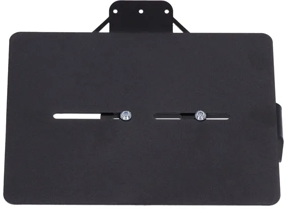 ×Black. For United Kingdom license plates measuring 178mm x 227mm. Not designed for use with a taillight. License plate illumination must be ordered separately as 943294. Made from 1.5mm thick steel, with a black wrinkle powder coated finish. For left and right side use. The horizontal elongated mounting holes allow further horizontal adjustments for a snug fit on the bike. The L-shaped mount bracket is 35mm wide and made of 6mm thick steel. Note: Not designed for installation of a taillight. Note: License plate illumination light is not included and can be ordered separately as 943294.