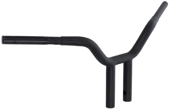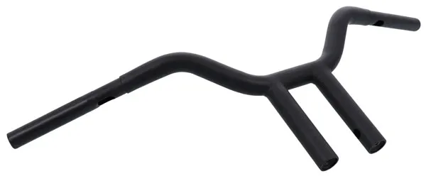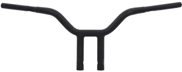 Handlebar Diameter: 32 mm (1-1/4") Units: Each Clamping Diameter: 25,4 mm (1") Type/Bend: Street Fighter| T-Bar Color/Finish: Black| Semi-Gloss Rise: 25,5 cm (10") Base Color: Black Product Name: Handlebar Base Finish: Semi-Gloss Pullback/Sweep: 20,5 cm (8") Controls Diameter: 25,4 mm (1") Material: Stainless Steel Features: Knurled Center| Notched for Throttle By Wire| Pre-Drilled Width: 78,5 cm (31") End Rise: 25,5 cm (10") Center Width: 10 cm (4")