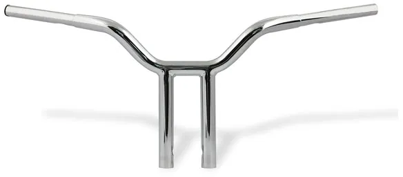 Rise: 30,5 cm (12") Pullback/Sweep: 20,5 cm (8") Features: Knurled Center| Notched for Throttle By Wire| Pre-Drilled Controls Diameter: 25,4 mm (1") Material: Stainless Steel Units: Each Center Width: 10 cm (4") Width: 78,5 cm (31") End Rise: 30,5 cm (12") Base Finish: Chrome Product Name: Handlebar Color/Finish: Chrome Clamping Diameter: 25,4 mm (1") Type/Bend: Street Fighter| T-Bar Handlebar Diameter: 32 mm (1-1/4") Base Color: Silver