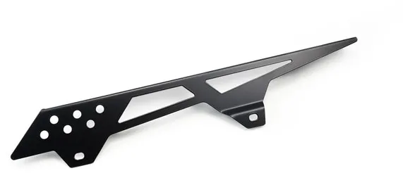 ×A chain guard is made to keep chain grease from being thrown around. It also is designed to catch the chain when it breaks, helping to prevent damage to bike, rider and passenger. The Zieger is both stronger and better looker than the OEM plastic guard. Manufactured from stainless steel with a black powder coated finish. Offers a simple bolt-on installation, directly to the OEM chain guard mounting holes.