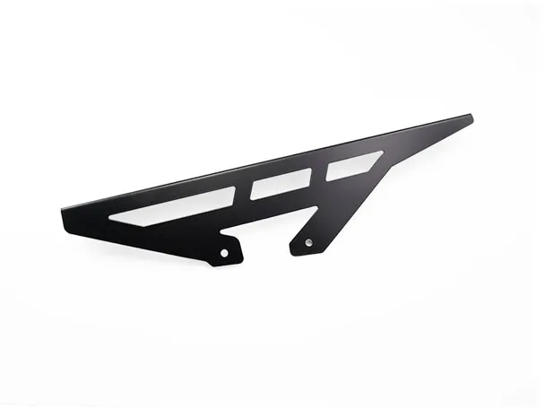×A chain guard is made to keep chain grease from being thrown around. It also is designed to catch the chain when it breaks, helping to prevent damage to bike, rider and passenger. The Zieger is both stronger and better looker than the OEM plastic guard. Manufactured from stainless steel with a black powder coated finish. Offers a simple bolt-on installation, directly to the OEM chain guard mounting holes.