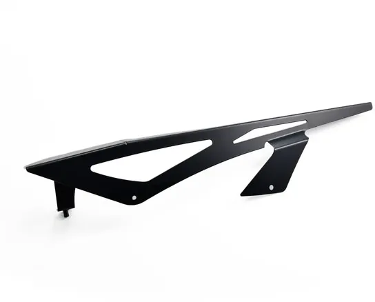 ×A chain guard is made to keep chain grease from being thrown around. It also is designed to catch the chain when it breaks, helping to prevent damage to bike, rider and passenger. The Zieger is both stronger and better looker than the OEM plastic guard. Manufactured from stainless steel with a black powder coated finish. Offers a simple bolt-on installation, directly to the OEM chain guard mounting holes.
