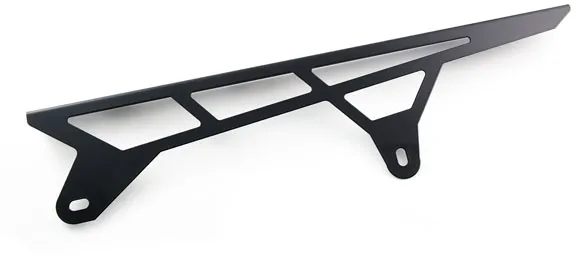 ×A chain guard is made to keep chain grease from being thrown around. It also is designed to catch the chain when it breaks, helping to prevent damage to bike, rider and passenger. The Zieger is both stronger and better looker than the OEM plastic guard. Manufactured from stainless steel with a black powder coated finish. Offers a simple bolt-on installation, directly to the OEM chain guard mounting holes.