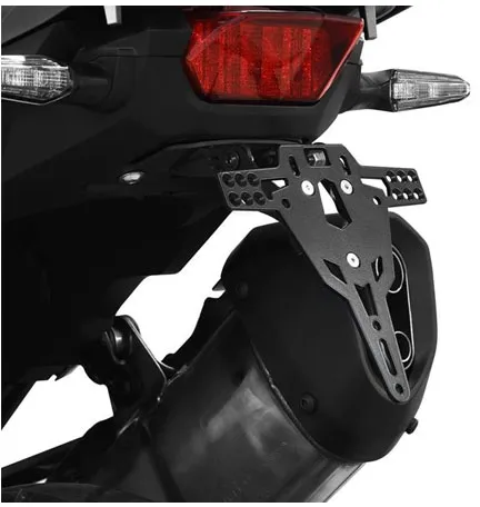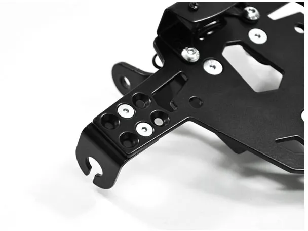 ×Black powder coated license plate bracket that allows installation without making changes to the fairing parts. Use with 175mm wide license plate (Germany, France, Italy). Including LED license plate light (ECE approved)